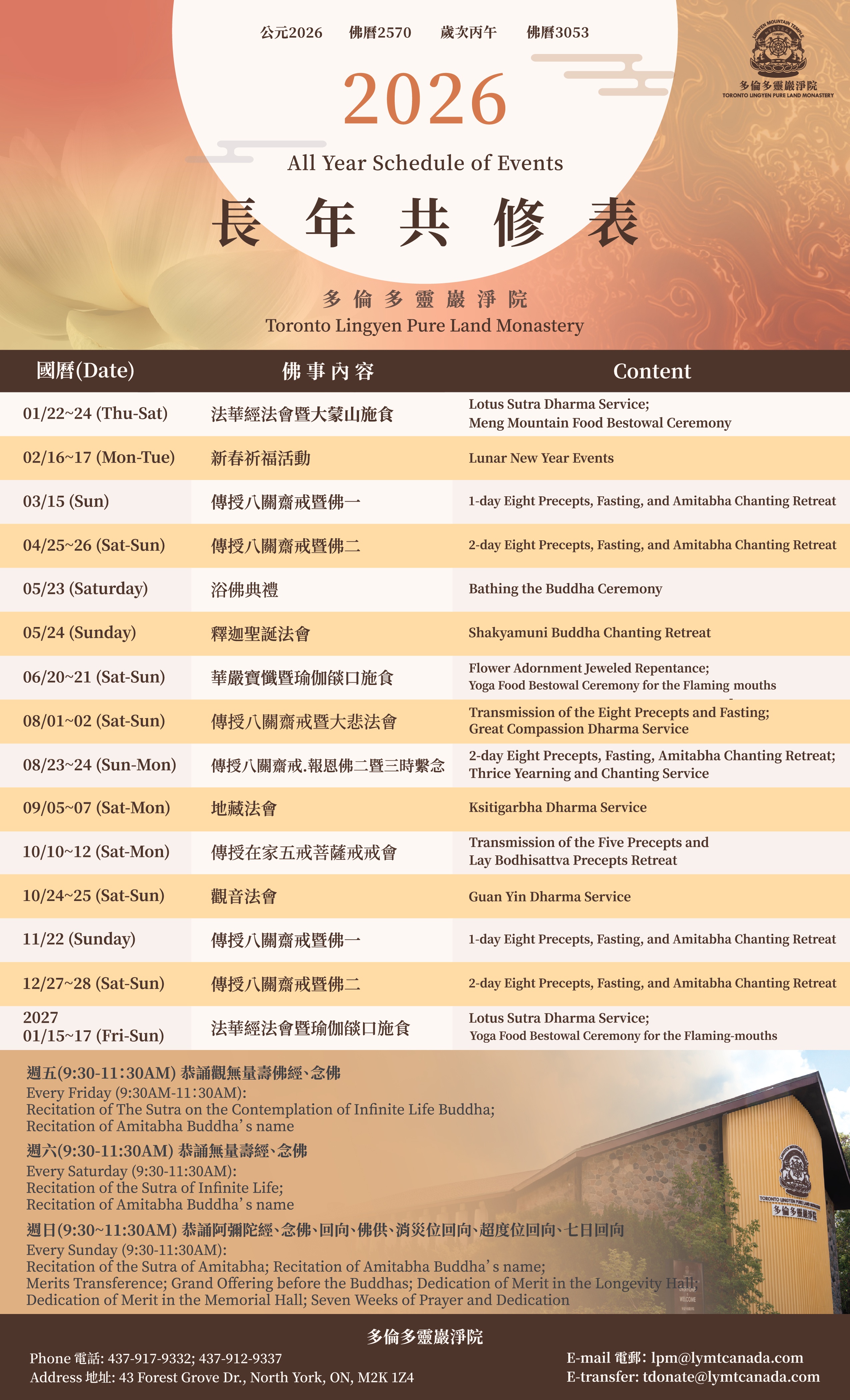2026 多倫多靈巖淨院長年共修表