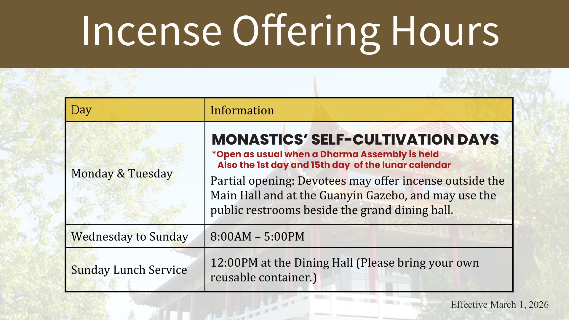 Open Hours for Visitors Descriptions: Calendar: View Year-round Calendar Location: Live Retreat: Introduction: