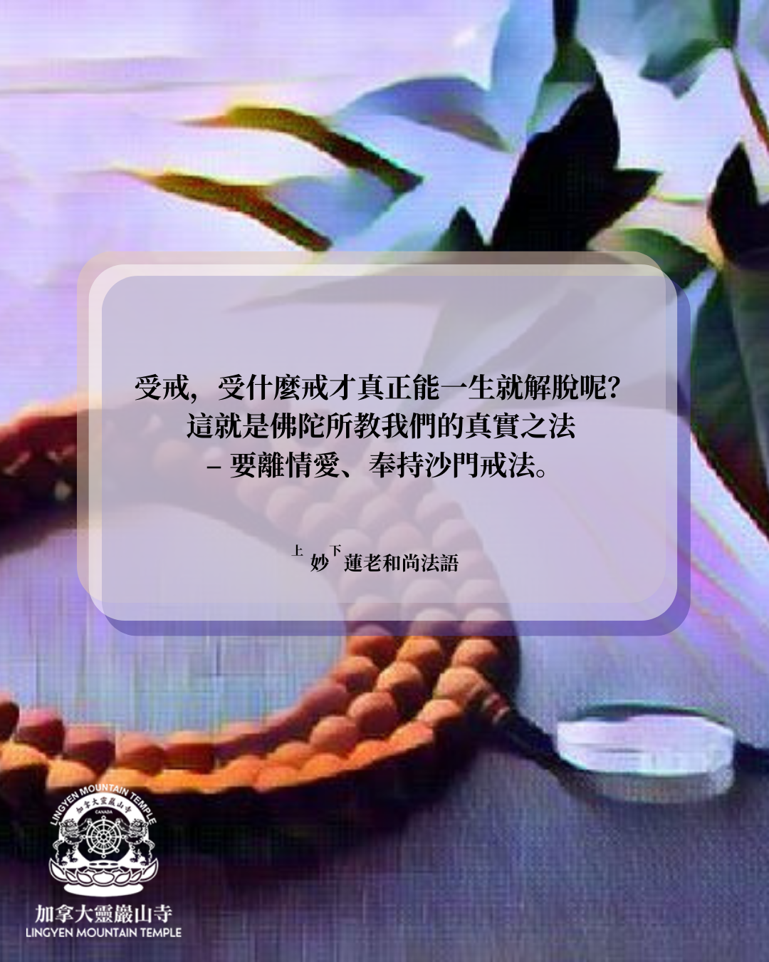 受戒,受什麼戒才真正能一生就解脫呢?這就是佛陀所教我們的真實之法—要離情愛、奉持沙門戒法。