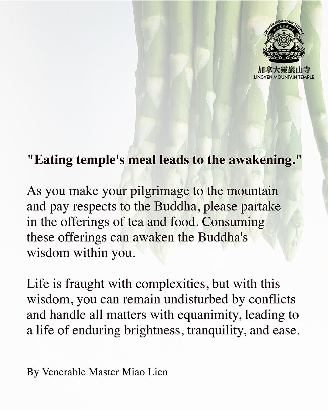 As you make your pilgrimage to the mountain and pay respects to the Buddha, please partake in the offerings of tea and food. Consuming these offerings can awaken the Buddha’s wisdom within you.