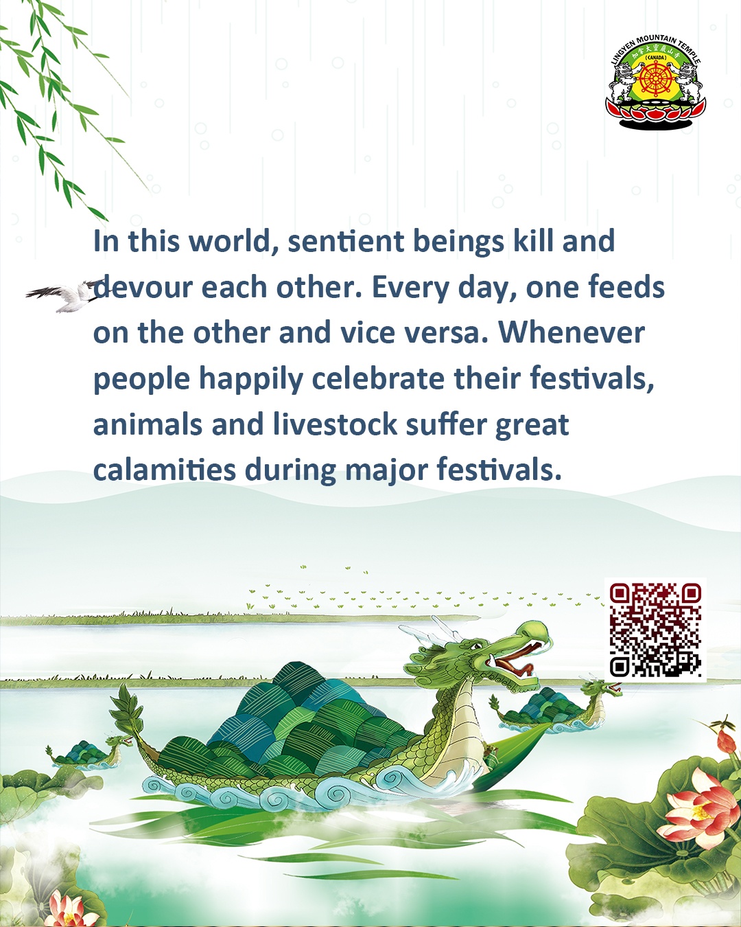 In this world, sentient beings kill and devour each other. Every day, one feeds on the other vice versa. Whenever people happily celebrate their festivals, animals and livestock suffer great calamities during major festivals.
